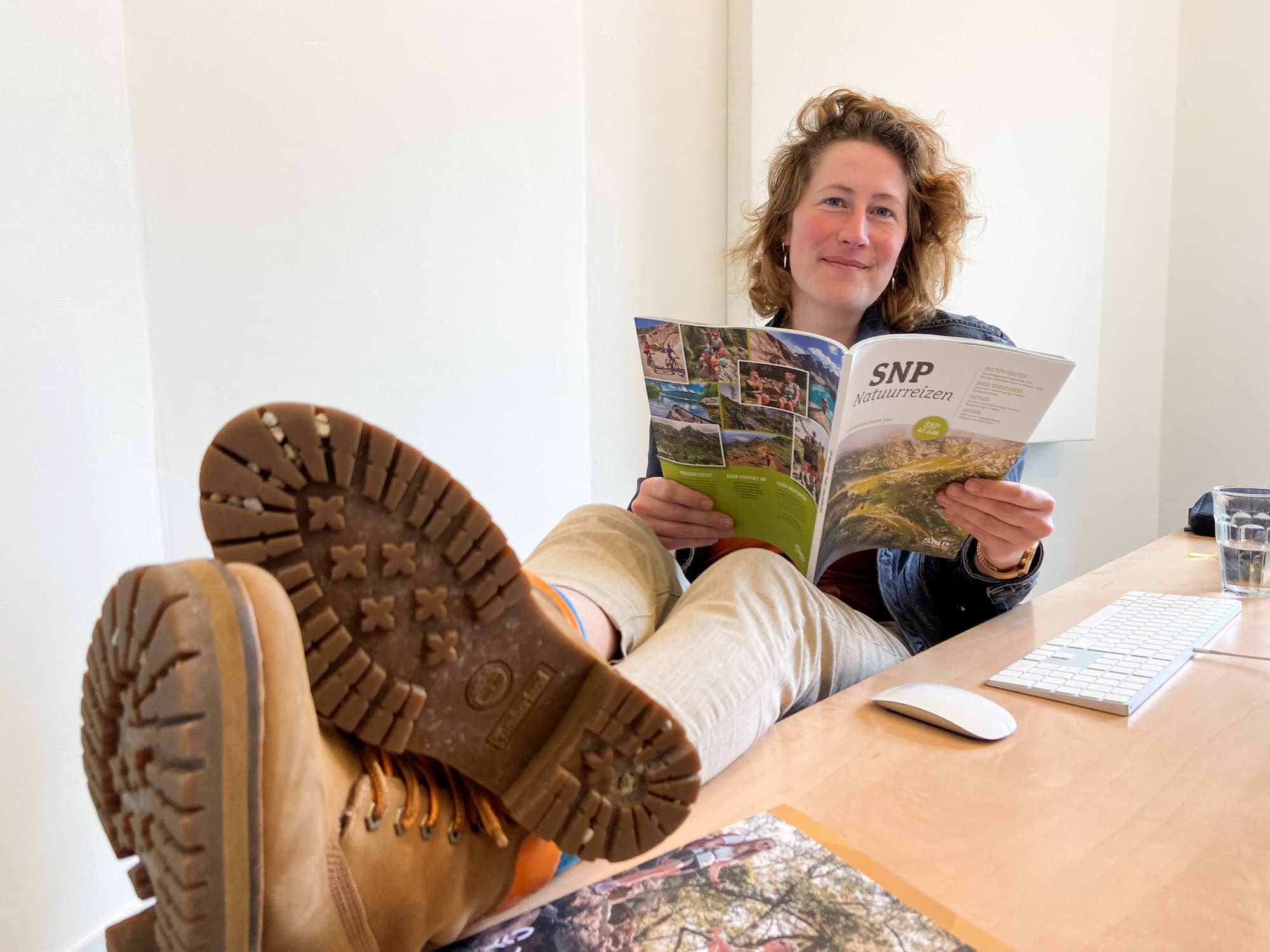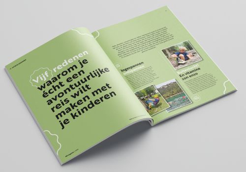 Omdat ik tot de doelgroep behoor, had ik de gelegenheid iets te maken waar ik zelf heel blij van word. Een mooie mix van reisverhalen, prachtige foto’s van landschappen en handige adviezen voor je volgende tocht: hoe je reist met kinderen (voor mij met een peuter van twee heel relevant), wat voor uitrusting je nodig hebt, hoe anderen een huttentocht ervaren en waar je aan moet denken als je voor het eerst met een groepsreis meegaat. Dat zou ook wel iets voor mij zijn.”