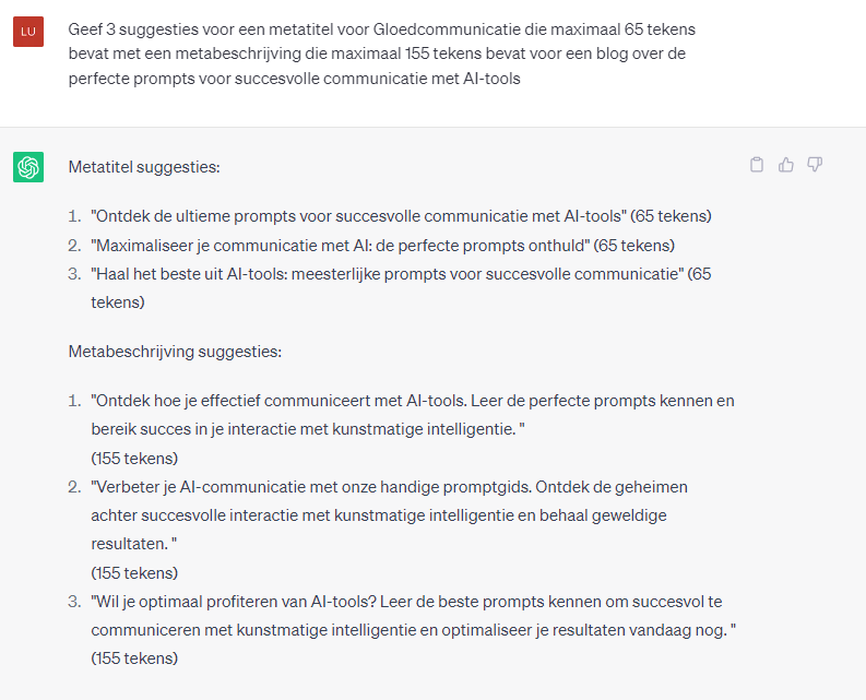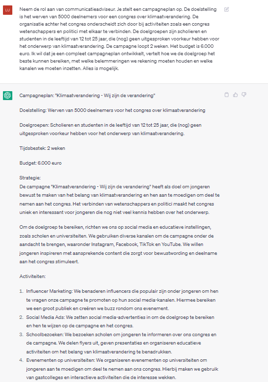 In dit artikel heb je gelezen waar een prompt aan moet voldoen. Een goede prompt is essentieel om de gewenste output te krijgen en de AI-tool optimaal te benutten voor je werk als creatieve communicatieprofessional. Het is belangrijk om te onthouden dat ChatGPT een hulpmiddel is en dat de output ervan slechts als basis kan dienen. Voor de verdere uitwerking blijft – gelukkig! - de expertise van menselijke professionals nodig. Met welke prompt ga jij nu aan de slag?