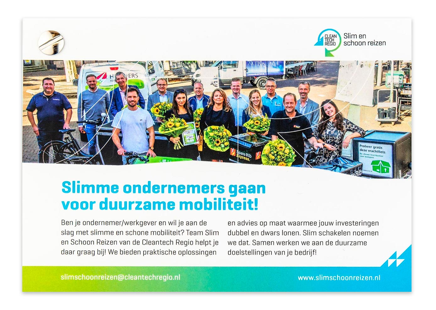 Dat deden we bijvoorbeeld toen de Wilhelminabrug bij Deventer dichtging vanwege groot onderhoud. Fietsers konden er nog overheen, maar auto’s niet. En dus benaderden we werkgevers in de omgeving en leenden we 100 e-bikes uit aan hun medewerkers. We communiceerden vanuit het Cialdini-principe van wederkerigheid: laat je de auto staan, dan mag je gratis een elektrische fiets uitproberen. Omdat mensen de e-bike meerdere weken leenden, ontstond er vanzelf nieuw gewoontegedrag: op de fiets naar het werk in plaats van met de auto. Naast deze campagne verzorgden we nog meer succesvolle communicatiecampagnes waarin uitprobeeracties centraal stonden. Zo stapten diverse ondernemers voor hun logistieke vervoer over op een elektrische vrachtfiets of een fietskoerier, na deze een week uitgeprobeerd te hebben.