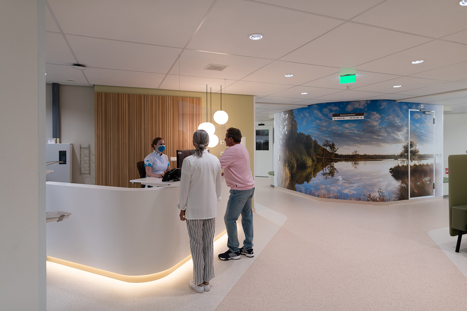CWZ werkt aan een ambitieus langetermijnhuisvestingsplan gericht op het realiseren van het ziekenhuis van de toekomst. Mijlpaal is de oplevering van verpleegafdeling B20. Wandsigning met beelden van de nabijgelegen Overasseltse en Hatertse vennen speelt daarin een belangrijke rol. In samenwerking met 2DoubleYou, het interieurarchitectenbureau, verzorgde Gloedcommunicatie een signingontwerp dat patiënten meeneemt naar de natuur en het proces van herstel.