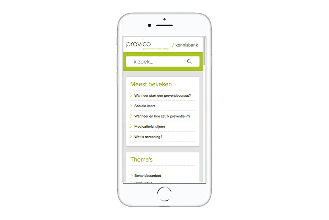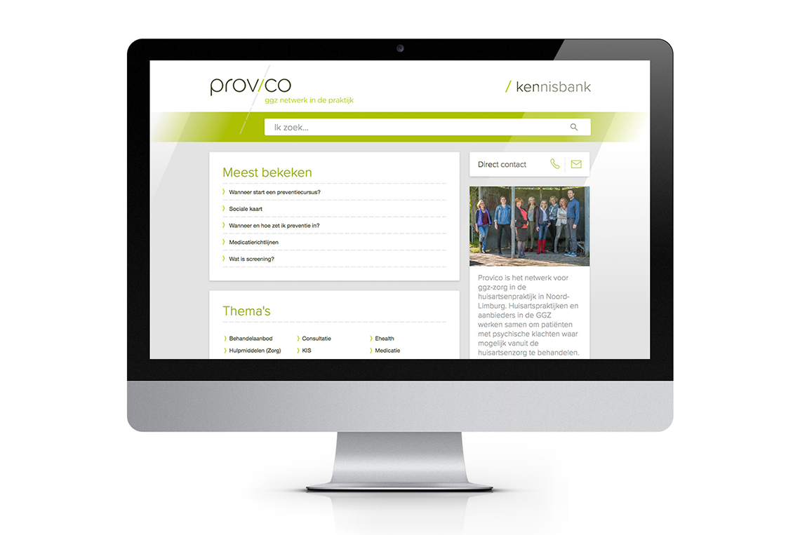 Provico is het netwerk voor ggz-zorg in de huisartsenpraktijken in Noord-Limburg. Hun papieren handboek, voor huisartsen, praktijkondersteuners (de POH-ggz) en bedrijven, voldeed niet langer. Het was te log, bood teveel informatie, de gebruiker nam er onvoldoende tijd voor. Provico vroeg Gloedonline daarom een handboek nieuwe stijl te maken; in de vorm van een handige online tool.