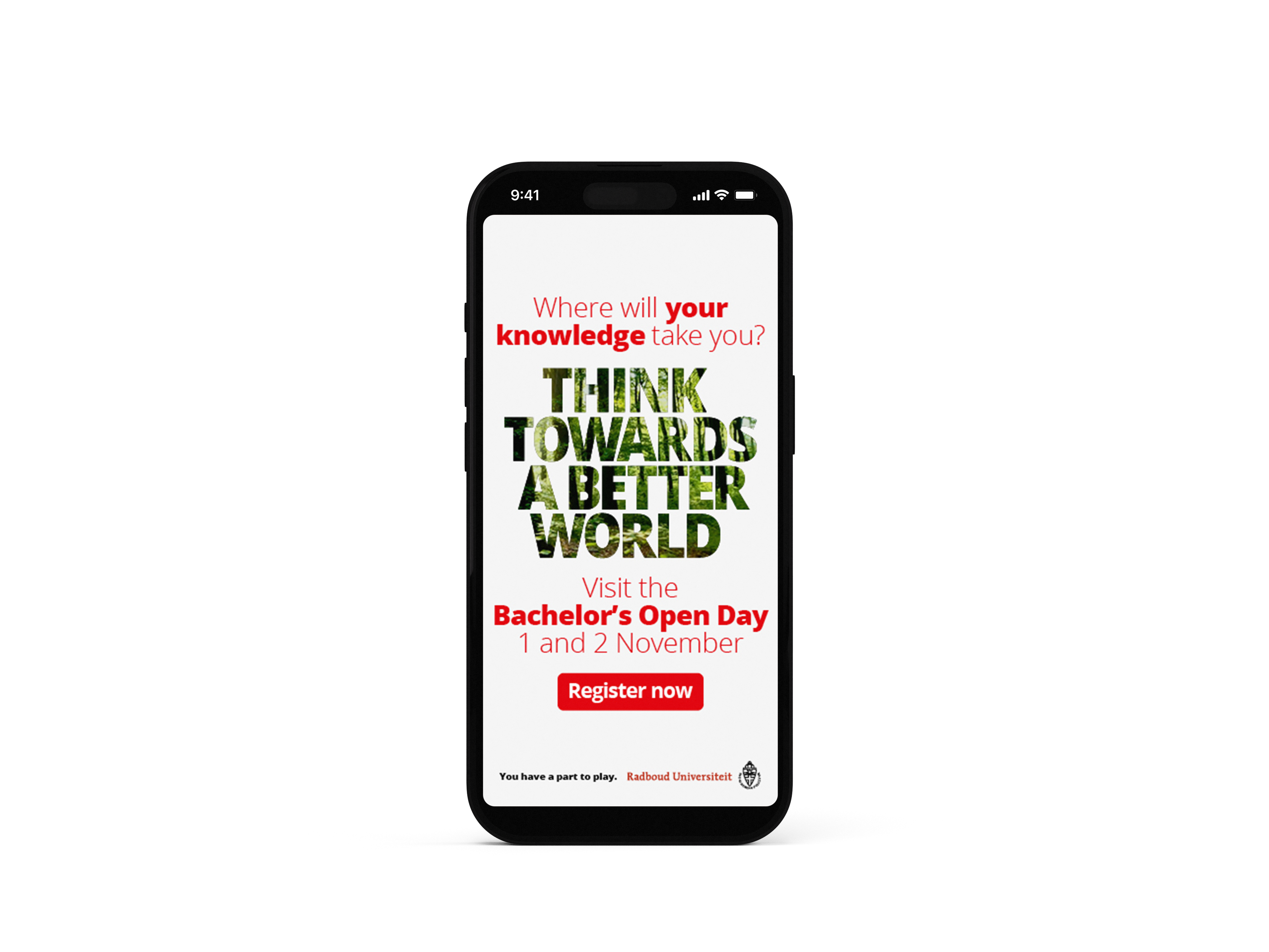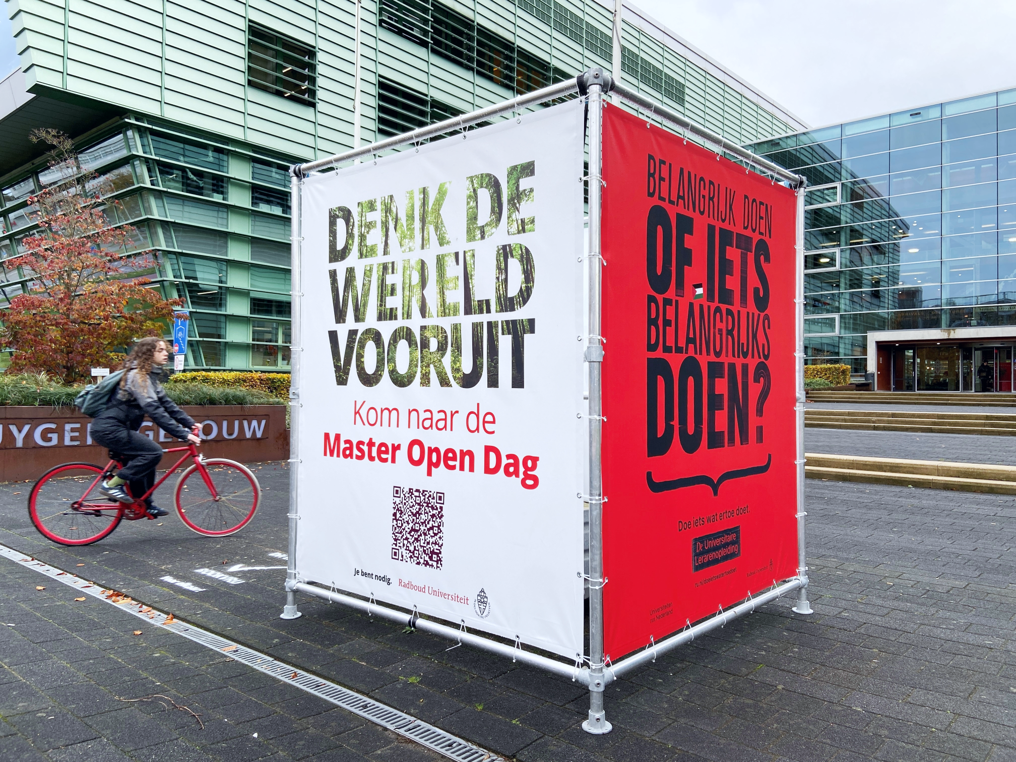 ’Denk de wereld vooruit’ is het thema van de nieuwe meerjarige campagne van de Radboud Universiteit. Deze nieuwe campagne is een doorvertaling en onderdeel van de bestaande en prijswinnende campagne ‘Je bent nodig’. Voor ’Denk de wereld vooruit’ werkt Gloedcommunicatie opnieuw nauw samen met Total Design.