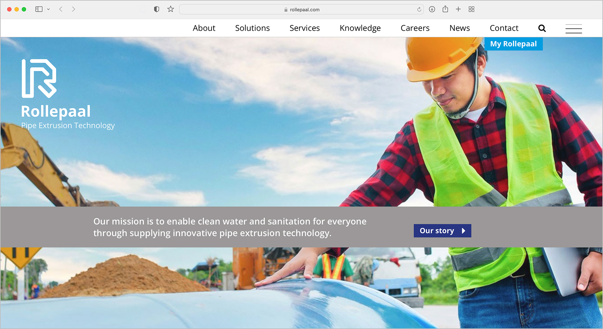 Rollepaal is a leading global supplier of pipe extrusion equipment for PVC, PO, multilayer, and PVC-O pipe production. In 2020 Hydratec Industries became a 100% shareholder. In cooperation with the parent company and Rollepaal's sales professionals Gloedinnovate developed the corporate identity. We then built the website and restyled the exhibition stand for K 2022, the world's No. 1 trade fair for the plastics and rubber industry in Düsseldorf.