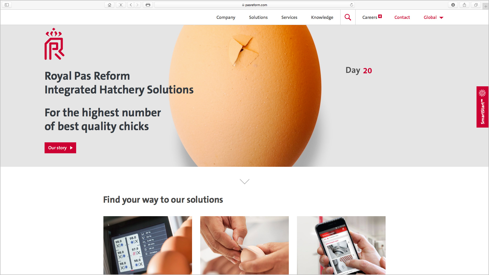 Corporate identity that positions Royal Pas Reform as an innovative hatching technology company all over the world. Animations, corporate film, website, exhibition stand, interface design, app, product brochures, packaging and e-newsletters. Pas Reform celebrated its 100th anniversary on 9 January 2019. Gloedinnovate put together a compilation video and designed various resources for the celebrations. Pas Reform was allowed to add the designation ‘Royal’ to its name in late 2019. Gloedinnovate designed the royal logo complete with a crown, as well as the set-up of the event and the exhibition on the company’s past, present and future.