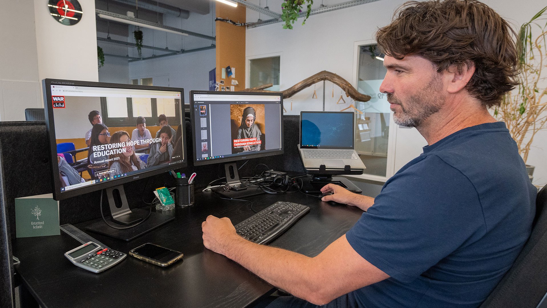 "We worden gezien als volledig onderdeel van de War Child-familie. De persoonlijke betrokkenheid en werkvreugde onderling staan altijd voorop. Ik vind het knap hoe ze altijd bedrijven aan zich weten te binden aan hun missie. Het jaarverslag? Voor mij zit de kracht in de korte statements en de fotografie. Het zijn ieder jaar schitterende foto’s, het spat er werkelijk vanaf. Zo hebben we met elkaar communicatief gezien echt veel impact."